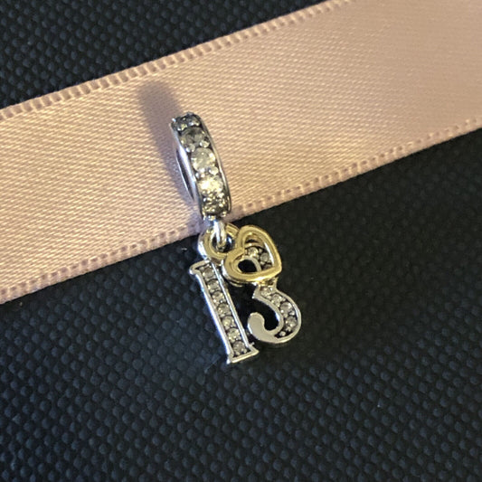 S925 Silver & Gold Pl Hanging 13th Milestone Birthday Charm Pendant - AVILIA Designs