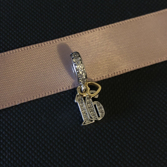 S925 Silver & Gold Pl Hanging 16th Milestone Birthday Charm Pendant - AVILIA Designs
