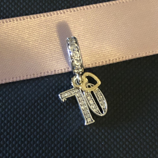 S925 Silver & Gold Pl Hanging 70th Milestone Birthday Charm Pendant - AVILIA Designs