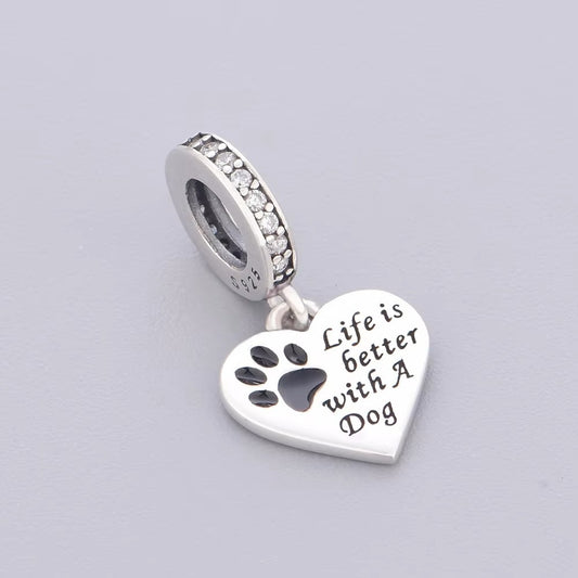 S925 Silver Pet Paw Life is Better With a Dog Tag Charm Pendant - AVILIA Designs
