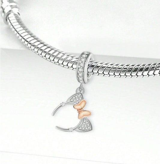 S925 Sterling Silver & Rose Gold Minnie Mouse Cat Ears Bow Charm Pendant - AVILIA Designs