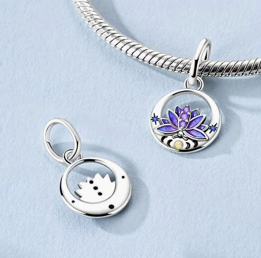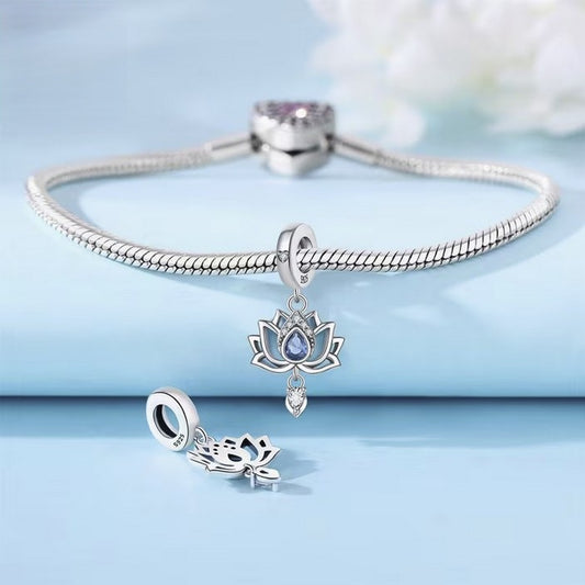 S925 Sterling Silver Hanging Blue Lotus Mystical Charm Pendant - AVILIA Designs