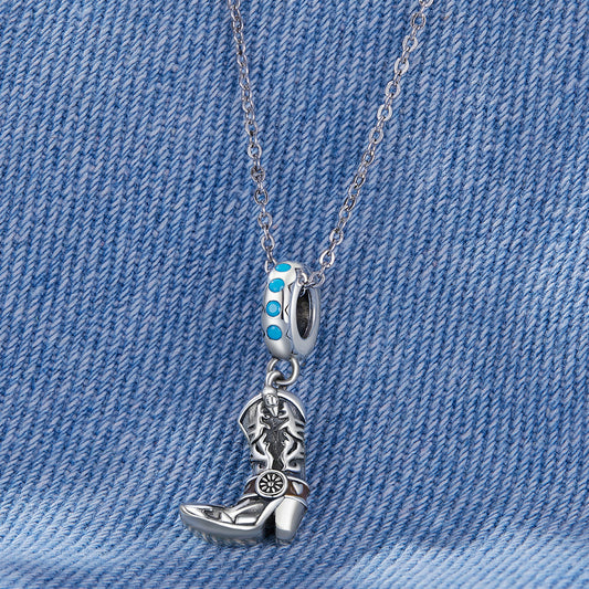 S925 Sterling Silver Western Cowgirl Horse Boots Charm Pendant - AVILIA Designs