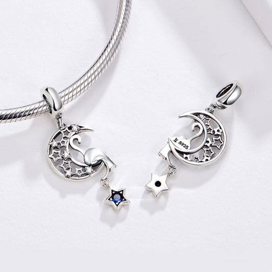SOLID Sterling Silver Hanging Cat on the Moon Pendant Charm - AVILIA Designs
