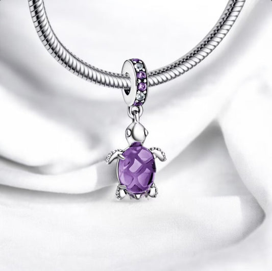 SOLID Sterling Silver Hanging PURPLE Glass Sea Turtle Charm Pendant - AVILIA Designs