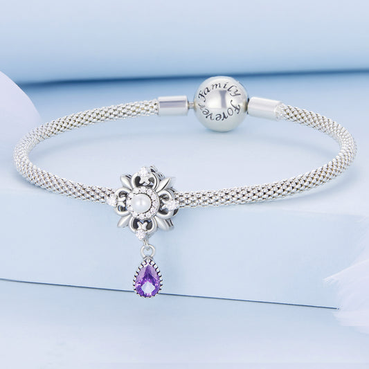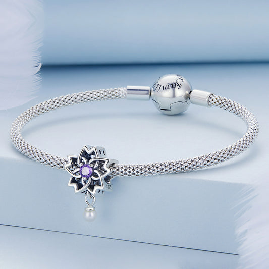 SOLID Sterling Silver Purple Vintage Lace Flower Pearl Charm Pendant - AVILIA Designs