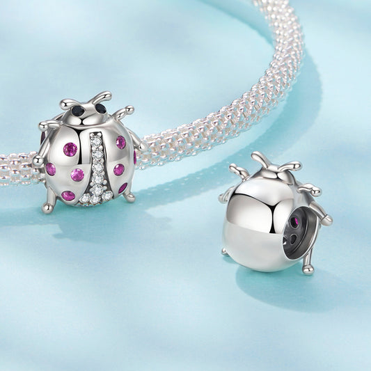 SOLID Sterling Silver S925 Spotted Pink Ladybird Garden Charm - AVILIA Designs