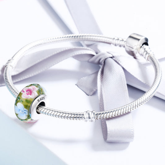 SOLID Sterling Silver Rose Garden Flower Murano Glass Charm - AVILIA Designs