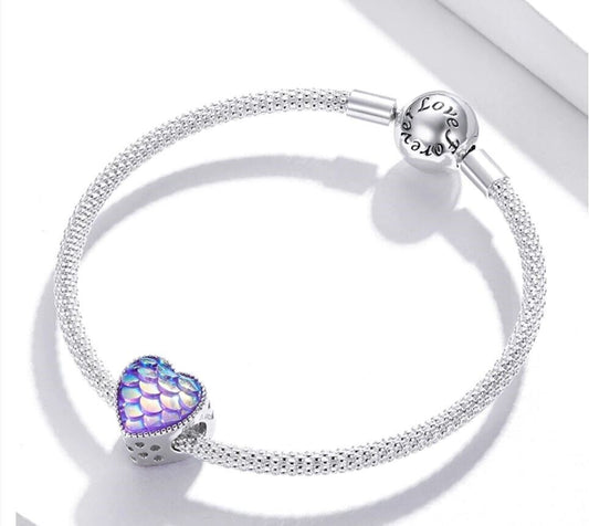 SOLID Sterling Silver Shimmer Mermaid Tail Scale Heart Charm - AVILIA Designs