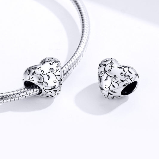 SOLID Sterling Silver Sparkling Floral Vine Heart Charm - AVILIA Designs