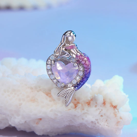 SOLID Sterling Silver Sparkling Mermaid Heart Oceanic Charm - AVILIA Designs