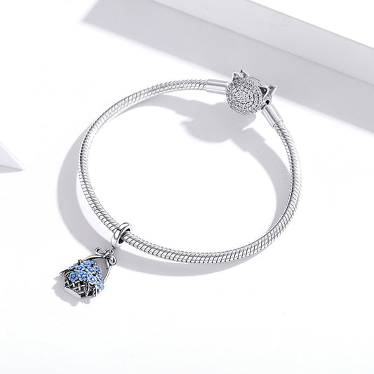 SOLID Sterling Silver Vintage Basket of Blue Flowers Charm Pendant - AVILIA Designs
