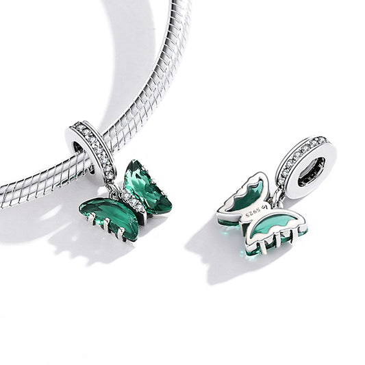 Sterling Silver Hanging Butterfly Dream GREEN Crystal Charm Pendant - AVILIA Designs