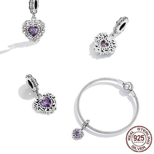 SOLID Sterling Silver Vintage Romance Heart Purple CZ Charm - AVILIA Designs
