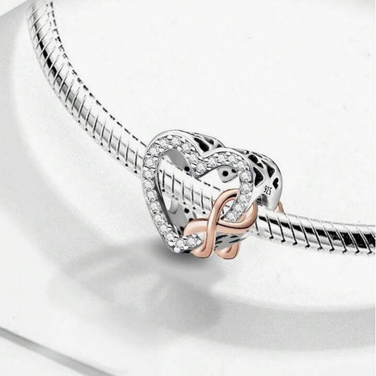 S925 Silver & Rose Gold Sparkly Open Heart Infinity Love Charm - AVILIA Designs