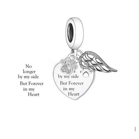 S925 Silver Angel Wings Forever in My Heart Pet Cat Dog Charm Pendant - YOUnique Designs
