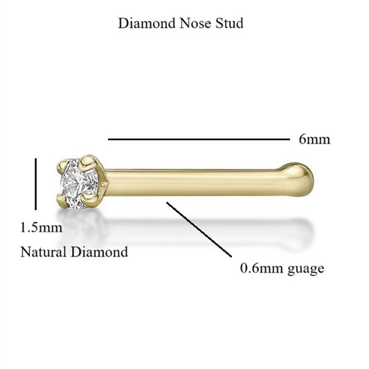 Solid 9ct Yellow Gold 1.5mm Natural Diamond Nose Stud Bone End - AVILIA Designs
