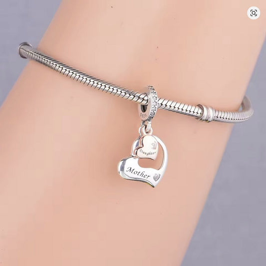 S925 Silver & Rose Gold Mother Mum Daughter Love Heart Charm - AVILIA DESIGNS