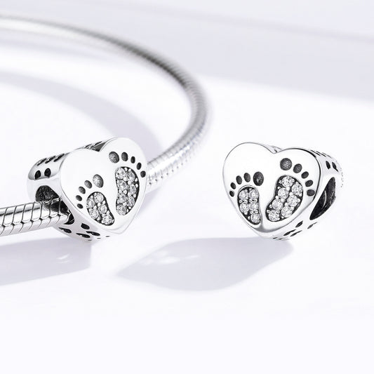 SOLID Sterling Silver New Baby Footprints Heart Foot Charm - AVILIA Designs
