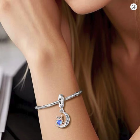 S925 Silver & Rose Gold Mummy I Love You To Moon & Back Heart Charm - AVILIA Designs