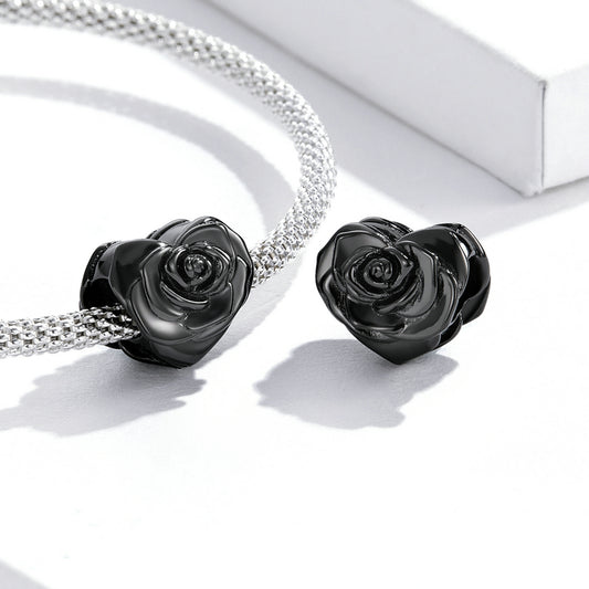 SOLID Sterling Silver Oxidised Rose Heart Flower Charm - AVILIA Designs
