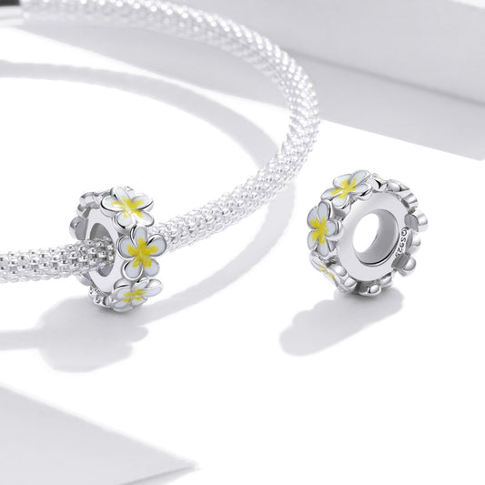 SOLID Sterling Silver Yellow Frangipani Flower Spacer Charm - AVILIA Designs