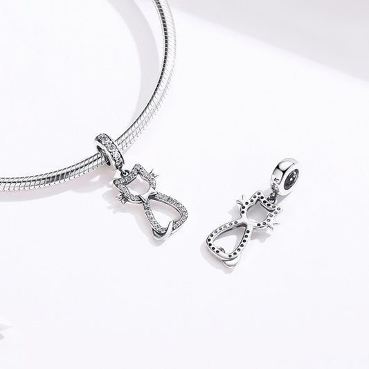 SOLID Sterling Silver Hanging Sparkling Kitten Cat Charm Pendant - AVILIA Designs