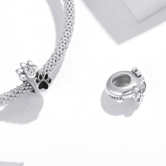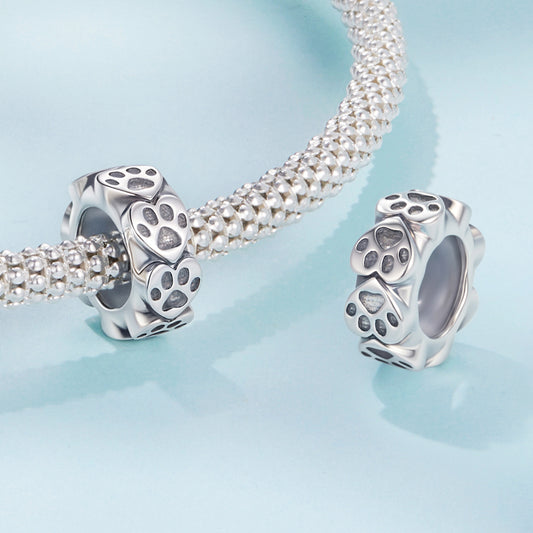 SOLID Sterling Silver Non Slip Spacer PAW Trail Cat Dog Charm - AVILIA Designs