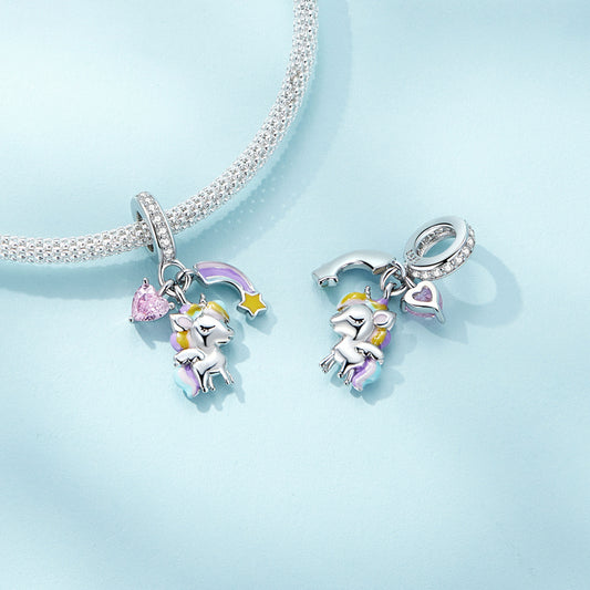 S925 Sterling Silver Mystical Unicorn Rainbow Charm Pendant - AVILIA Designs