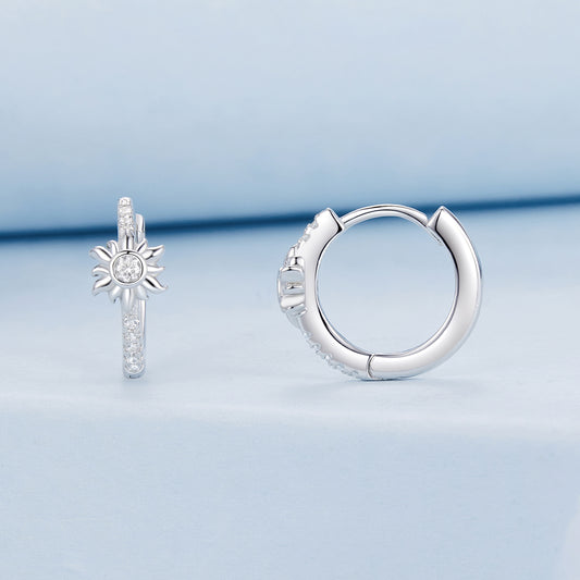 SOLID Sterling Silver Celestial Sun 12mm CZ Hoop Earrings - AVILIA Designs
