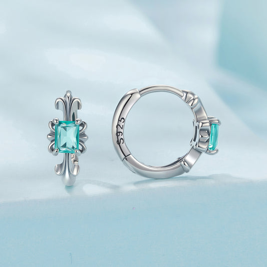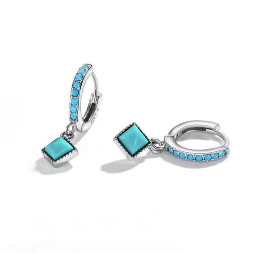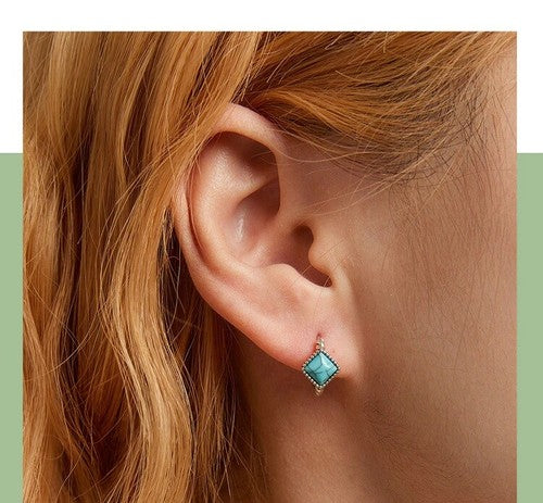 SOLID Sterling Silver Natural Turquoise Huggie Hoop Earrings - AVILIA Designs