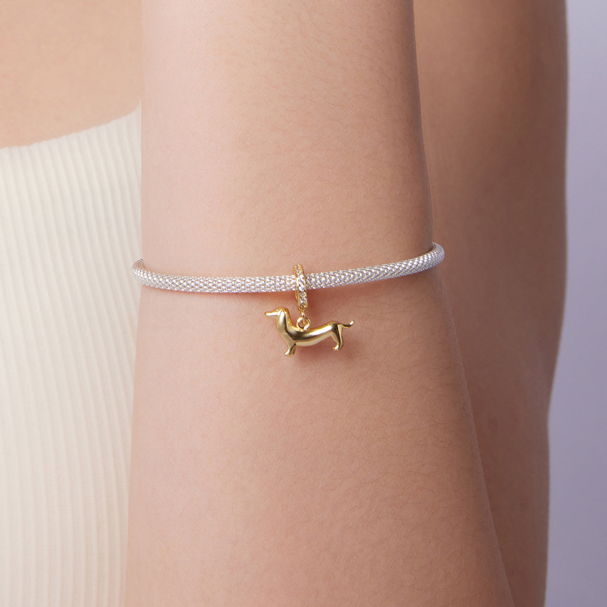 - Design: Sterling silver & 14k gold plating sweet Dachshund dog charm or pendant
