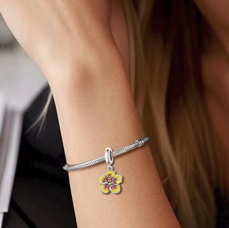 S925 Sterling Silver Yellow Tropical Hibiscus Flower Charm Pendant - AVILIA Designs