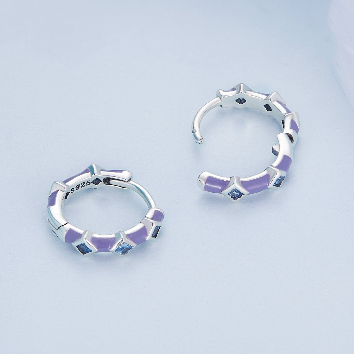 SOLID Sterling Silver Blue CZ Geometric Huggie Hoop Earrings - AVILIA Designs