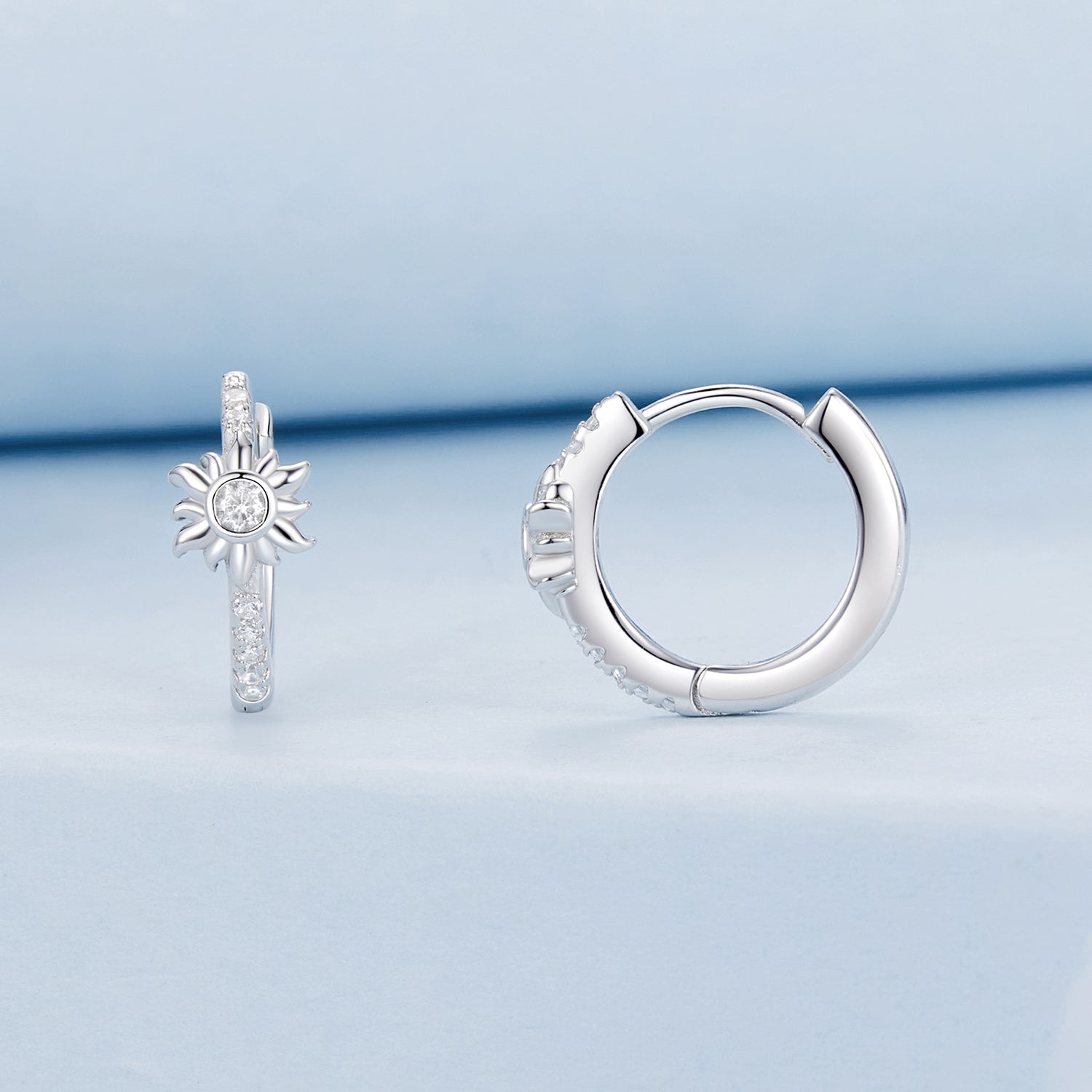 - Design: Sterling silver sparkly hoops with celestial sun