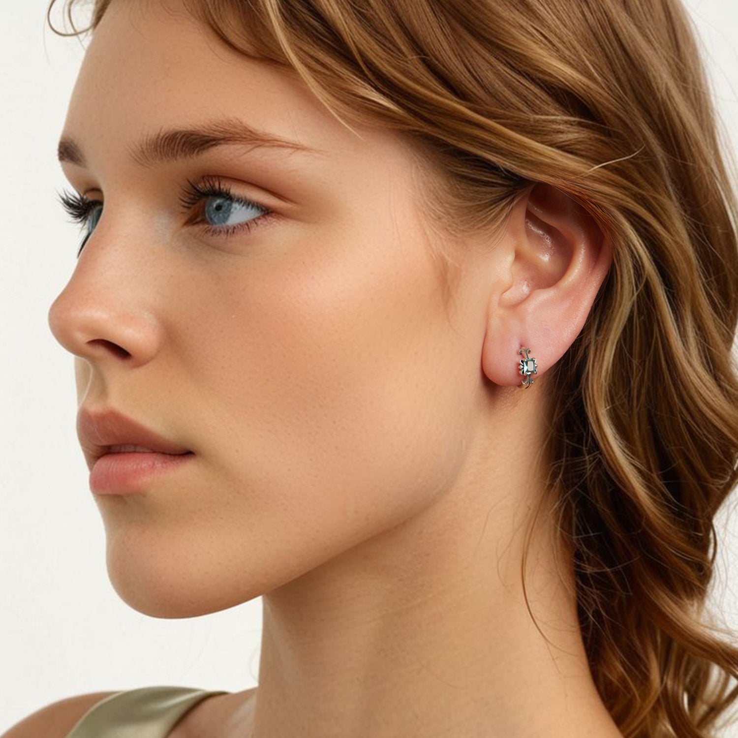 - Design: Sterling silver fleur-De-Lis Aqua CZ hoop earrings