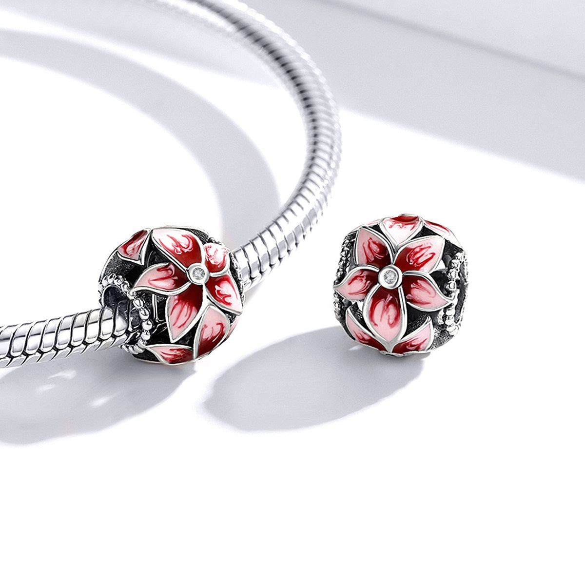 - Design: Pretty openwork lily flower charm with light pink enamel petals
