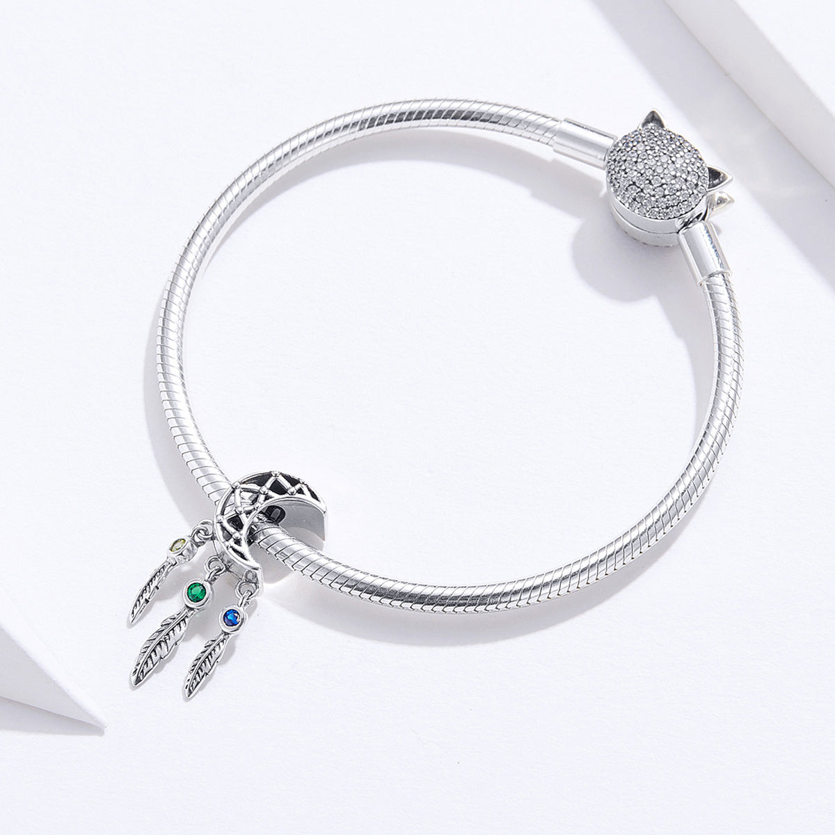 SOLID Sterling Silver Moon Dream Catcher Charm Pendant - AVILIA Designs