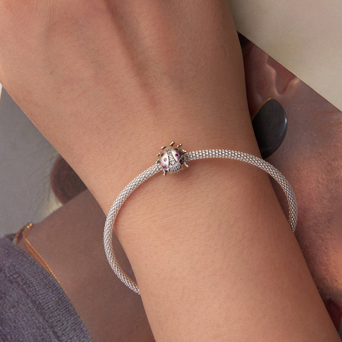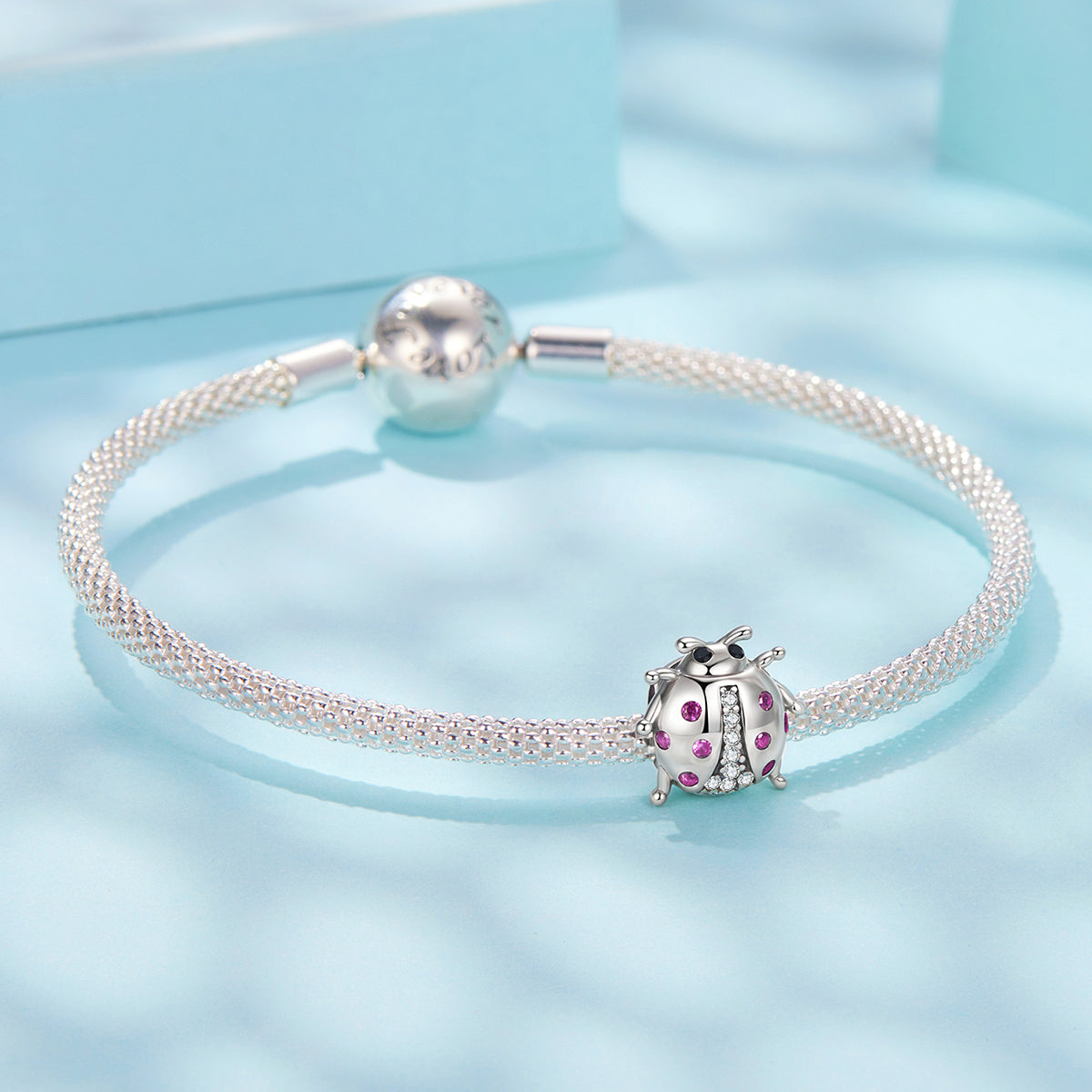 - Design: Sterling silver hot pink sparkly spotted ladybird charm