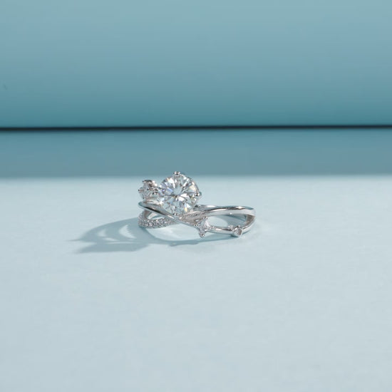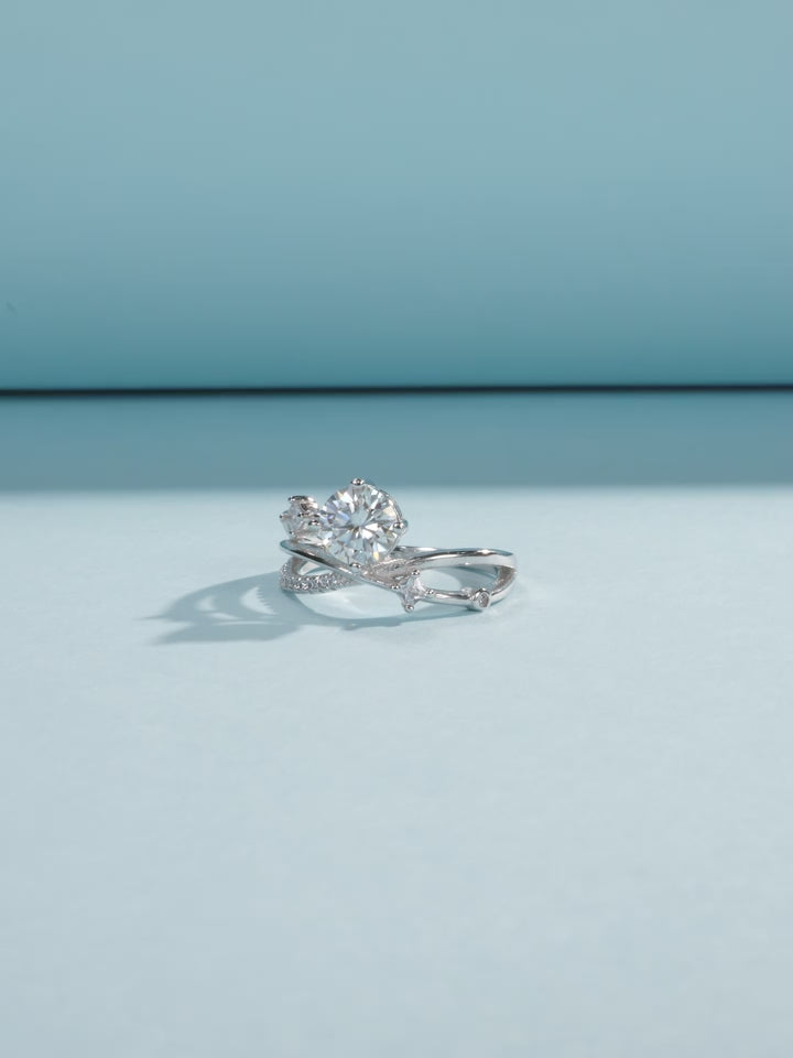 - Design: 1.00ct solitaire Moissanite dress ring with three rows featuring sparkly CZ