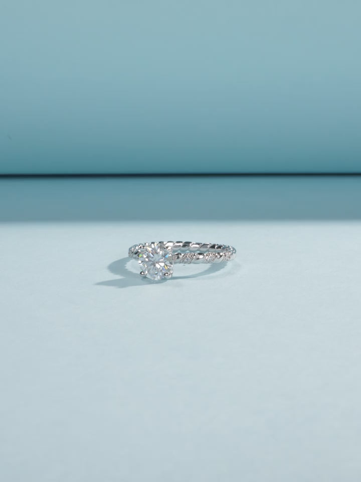 Sterling Silver 1.00ct Solitaire Moissanite Ring with Rope Twist Band