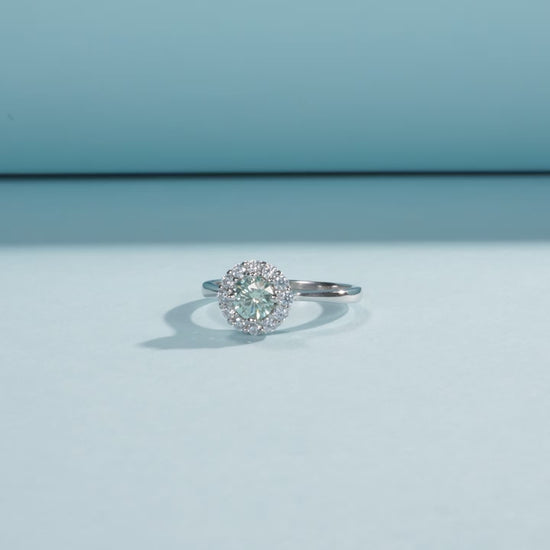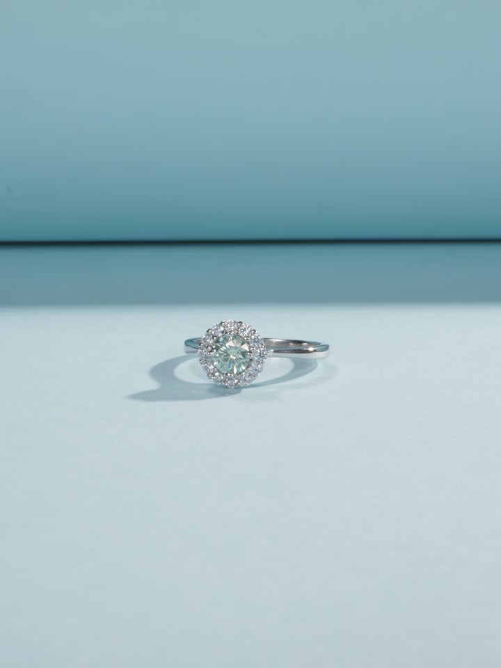 - Design: 0.50ct centre teal Moissanite cluster ring